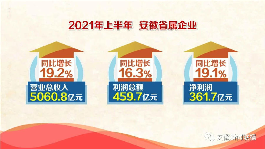 今年以來,安徽國資系統立足新發展階段,貫徹新發展理念,服務構建新發展格局,使國資國企在高質量發展上又取得了新的進展。上半年,安徽省屬企業實現營業總收入5060.8億元、利潤總額459.7億元、凈利潤361.7億元,同比分別增長19.2%、16.3%和19.1%,其中營業總收入和凈利潤分別位居全國第7位和第3位,中部第2和第1位,長三角第3和第2位,進一步鞏固了全國第一方陣、中部領先地位和長三角地區的比較優勢。海螺集團、銅陵有色集團連續3年入圍《財富》世界500強,排名分別躍升為第315位、第407位。