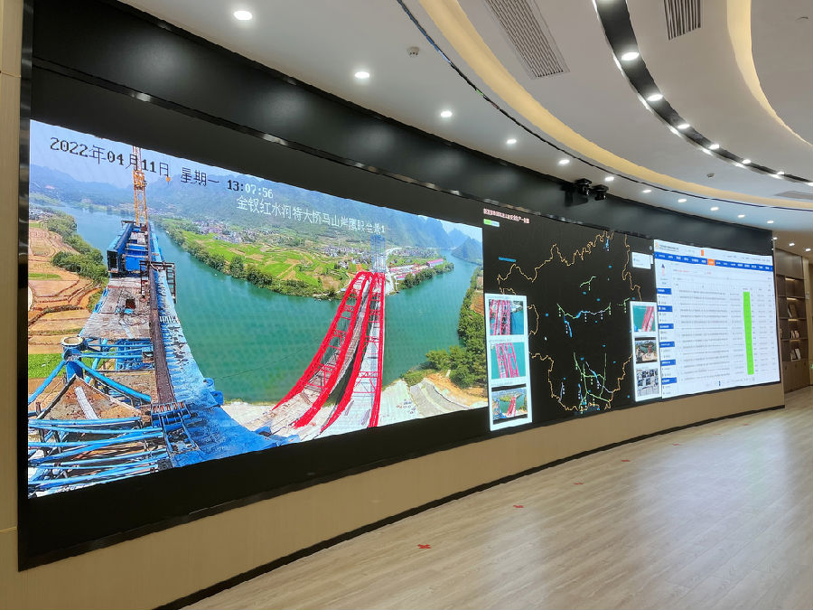 在新發展大廈一樓的智慧高速公路指揮中心,巨大的電子屏幕上展現著高速公路建設施工現場,各在建高速公路項目的畫面可以隨時切換。工程建設的進度如何,工人操作是否規范,有沒有安全隱患……這些信息通過建設管理平臺都可以一覽無余。疫情防控期間,部分縣區實行封閉管理,管理人員無法到現場開展質量、安全監管,建設管理平臺在保障項目質量、安全、有序作業等工作上起到至關重要的作用。
