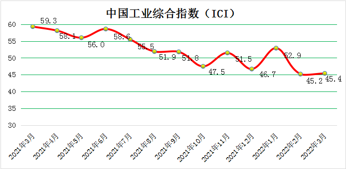 3月份ICI綜合指數和四個二級指標除預期發展指數外均位于榮枯線之下,但基本保持穩定。由于國內經濟韌性較強,同時受到世界經濟復蘇的拉動,在工業創新驅動作用增強、產業升級持續帶動、市場保供加強等方面的助力下,工業受到的實際短期影響不算嚴重,長期來看工業行業發展尚屬樂觀。