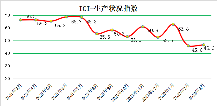 3月份ICI制造業指數為44.8%,環比回升0.5個百分點,繼續位于榮枯線之下。