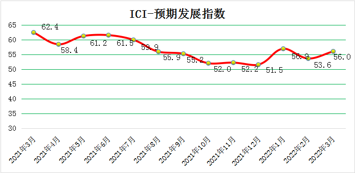 3月份ICI數據維持除預期發展指數外均位于榮枯線之下,但總體變化不大,其原因是樣本中有一定數量的采礦業企業。同時,制造業企業樣本里大型企業居多也有一定程度的影響。