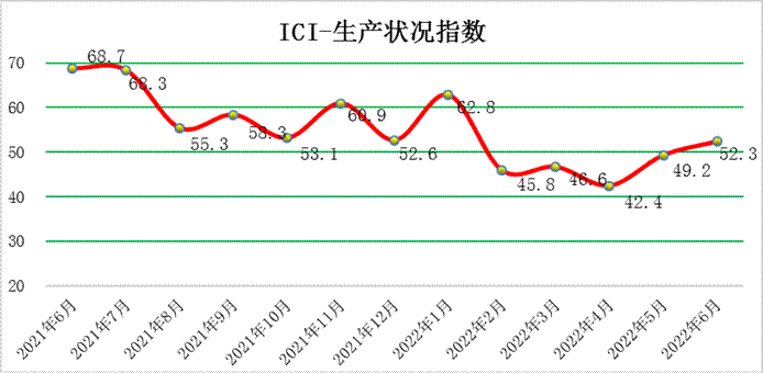 6月份ICI制造業指數為51.2%,環比回升3.5個百分點,漲至榮枯線之上。