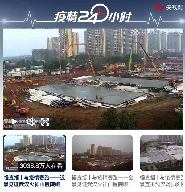 為了抗擊疫情,全國人民響應號召,盡量不出門、不聚集,“宅”著度過這個春節。全國“戰疫”的非常時期,央視頻在火神山、雷神山醫院施工現場的24小時滾動直播,熱度空前。