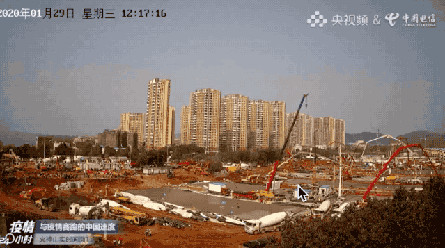 1月27日晚8點起,一家央企(中國電信)聯合一家央媒(央視頻)給另外一家央企(中國建筑)施工現場開通了5G慢直播,請來了數以千萬計的免費“監理”:建設者們爭分奪秒日夜奮戰,廣大網友變身“云監工”,24小時義務監督施工,共同見證與疫情賽跑的中國速度。高峰時有4000余萬人同時在線,為一線建設者加油打氣。