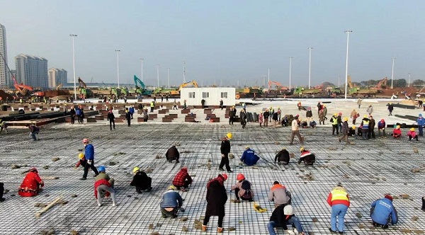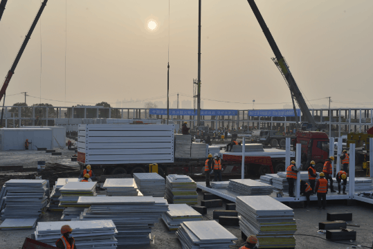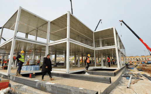 截至1月29日下午16時,現場場地平整和回填全部完成,板房基礎混凝土澆筑完成約90%,已經完成300多個箱式板房骨架安裝,同時場外正在抓緊板房拼裝,完成約400個,吊至現場可直接安裝。水電暖通、機電設備等材料全面到位,且同步開始作業。