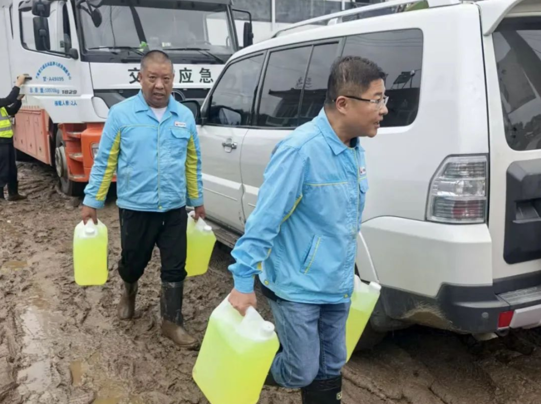 中國石油國家危險化學品應急救援蘭州石化隊緊急集結30名救援隊員和6輛搶險救援車,攜帶200套救援物資及液壓救援頂桿、生命探測儀、無人機等專業設備,向榆中災區緊急馳援。8月8日17時,蘭州分公司8名黨員組成“救援先鋒隊”,攜5噸油品及礦泉水、方便面等應急物資,馳援災區?!熬仍蠕h隊”克服重重阻礙,歷時7個小時后,將第一批油品成功送到了救援現場,并立即為搶險救援車輛、機械和發電機等設備加注燃油,爭分奪秒助力打通搶險救災生命線。