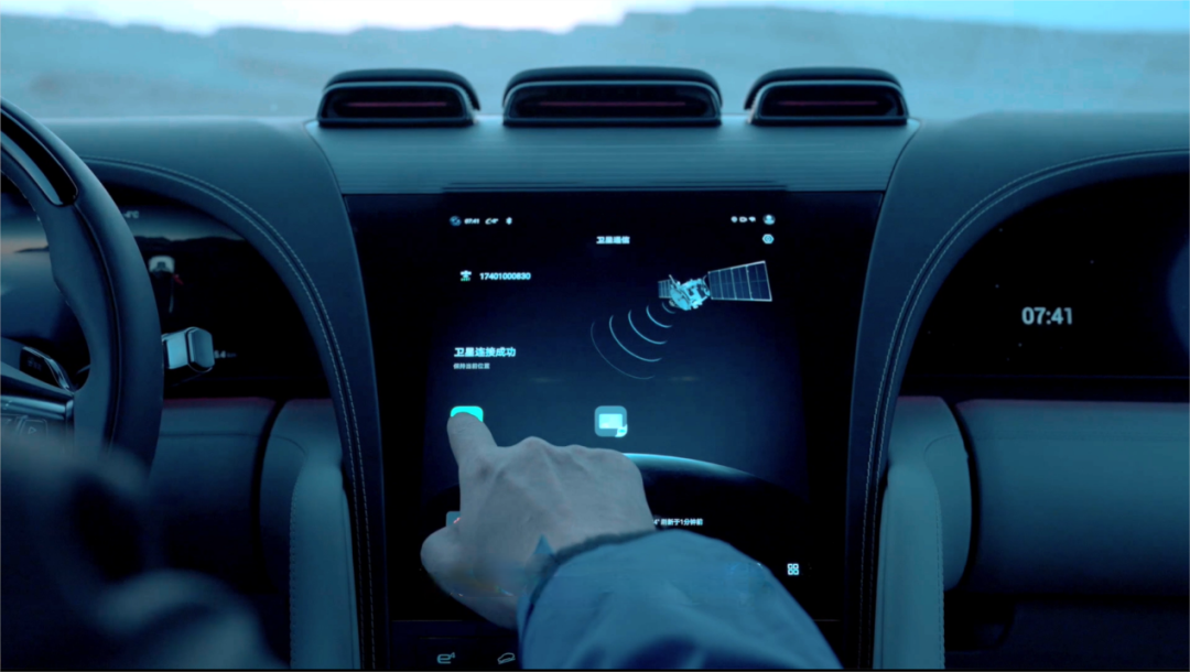 仰望U8車機連接天通衛星成功的畫面,中國電信供圖