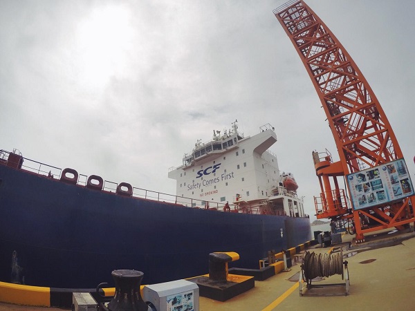 圖為在中化泉州石化裝滿成品油的5萬噸柴油船,即將開往“一帶一路”沿線國家。(國資委新聞中心 馬語謙攝)