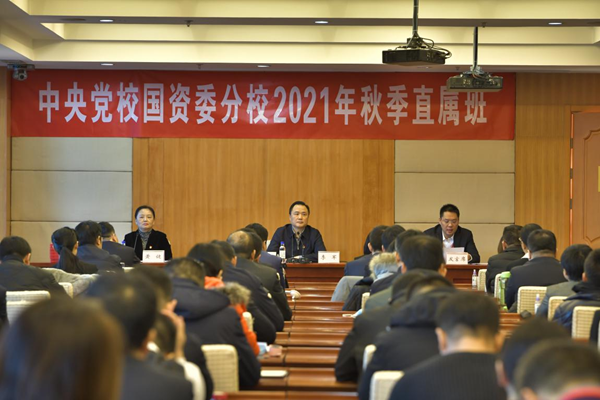 2021年12月17日上午,中央黨校國資委分校舉行2021年秋季直屬班畢業典禮。國資委干部教育培訓中心負責同志出席并講話。2名學員代表發言匯報了學習收獲,來自中央企業和國資委機關、直屬單位、委管行業協會及管理局系統的80名直屬局處級干部進修班學員參加畢業典禮。25名學員被評為優秀學員,14名學員的畢業論文被評為優秀個人畢業論文。