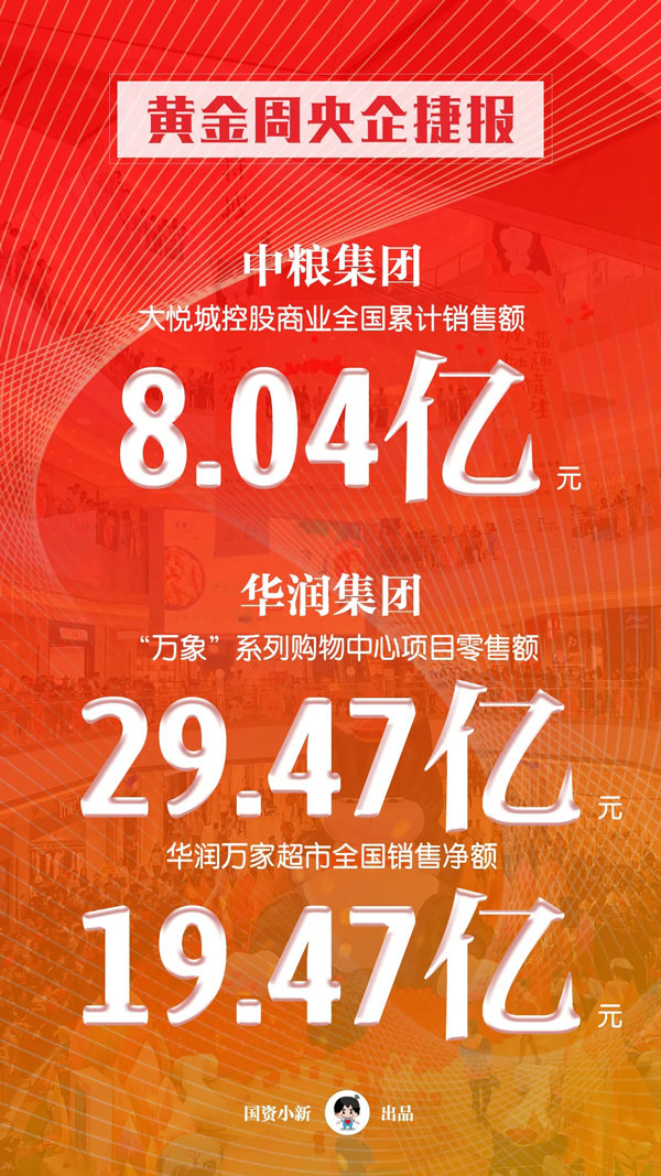 8天長假期間全國共接待國內游客6.37億人次,按可比口徑同比恢復79.0%,實現國內旅游收入4665.6億元,按可比口徑同比恢復69.9%。作為國民經濟重要支柱的中央企業,是假期消費旺、經濟暖的注腳,是假日經濟的服務保障。一起來看黃金周央企捷報——