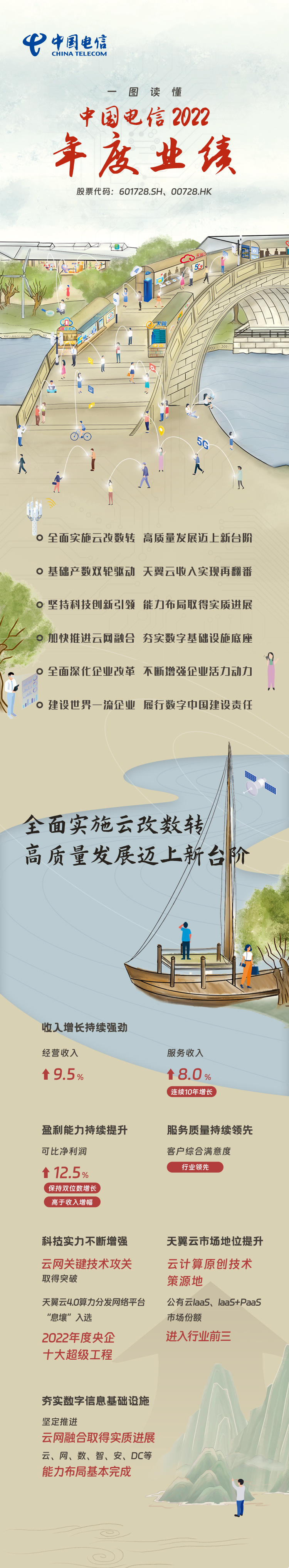 近日,中國電信(SH:601728)公布2022年年度業績。