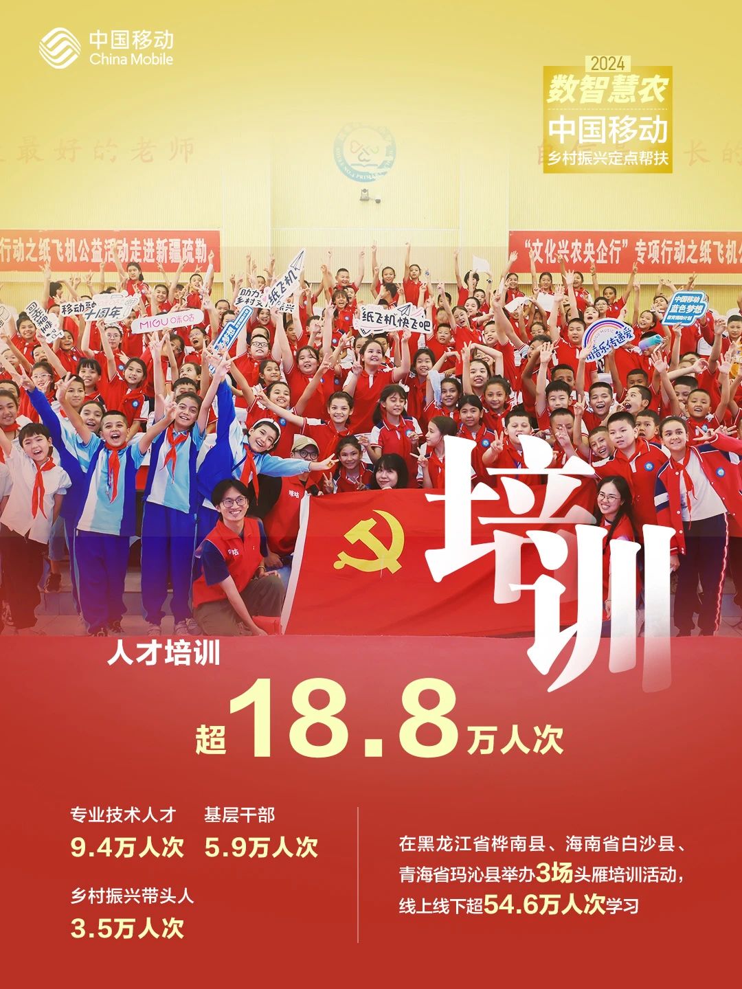 2024年,中國移動錨定建設農業強國目標,深入學習“千萬工程”經驗,聚焦“兩確保 三提升 兩強化”核心目標,抓好“規劃引領、數智賦能、管理提升”三方面工作,組織機制不斷優化完善,幫扶舉措更加精準務實,數智賦能持續創新突破,扎實推進鞏固拓展脫貧攻堅成果和鄉村全面振興取得積極成效。