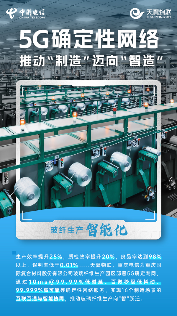 近年來,中國電信天翼物聯大力開展確定性網絡關鍵核心技術攻關,面向工業生產核心環節,自主研發推出5G確定專網,提供10ms(毫秒)低時延、可靠性達到99.99%,以及百微秒級低抖動、高可靠性達到99.999%等確定性網絡服務,全面滿足工業車間級、產線級的自適應時延、抖動、可靠等確定性需求,推動5G從外圍輔助環節向生產核心環節規模應用,助力“中國制造”加速邁向“中國智造”,為全球制造業數字化轉型貢獻中國智慧和中國方案。