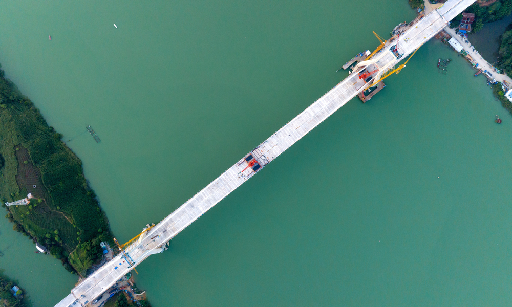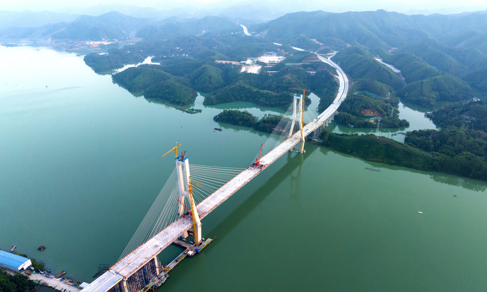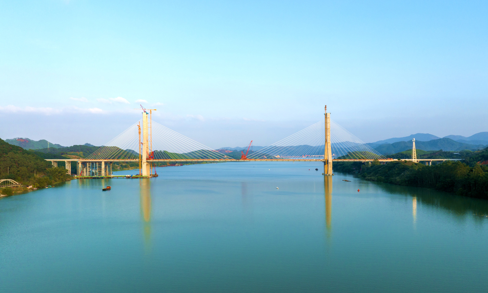 建設過程中,項目團隊堅持控制好大橋合龍口水平方向和豎直方向的溫度、安裝精度,通過BIM技術對合龍桿件安裝進行模擬,同時積極利用施工變形監控、環境監測等信息化管理方式,控制索力和鋼梁段位置和高程,強化安全質量管控,成功解決了大橋合龍口調整、頂推安全、精度控制等技術難題,最終實現了大橋毫米級高精度合龍目標。