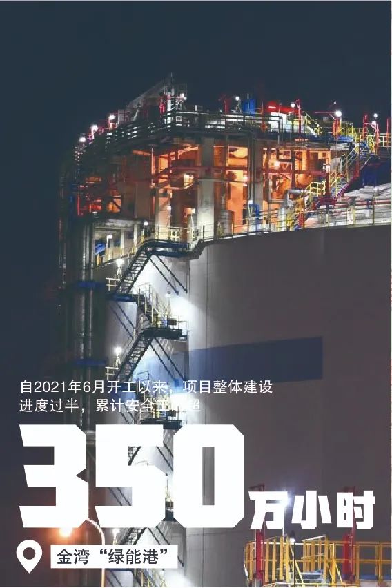 金灣“綠能港”二期項目被列入國家石油天然氣基礎設施重點工程,同時建設5座27萬立方米液化天然氣儲罐及配套設施,建成投產后,將成為華南地區規模最大的天然氣儲運基地,年處理能力可達700萬噸,折合氣態天然氣約100億立方米。該項目自2021年6月開工建設,截至目前整體建設進度過半。項目經受了暴雨、狂風、臺風、酷暑等極端天氣的考驗,累計安全工時超350萬小時。