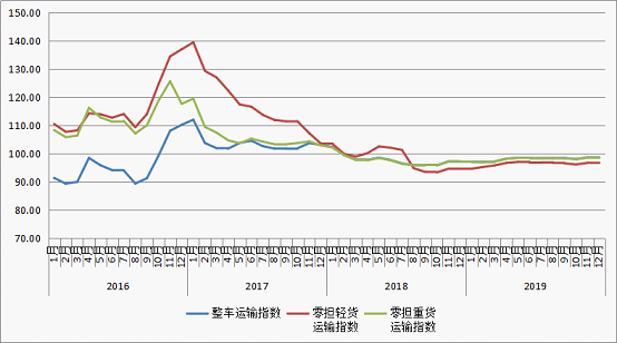 2019年12月份,由中國物流與采購聯合會和林安物流集團聯合調查的中國公路物流運價指數為98.3點,比上月回升0.1%,連續兩個月小幅回升;與年同期相比延續較好回升態勢,同比回升1.8%。
