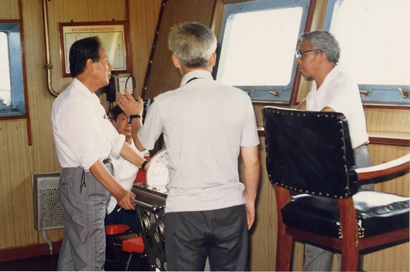圖為工作中的黃旭華(左一)