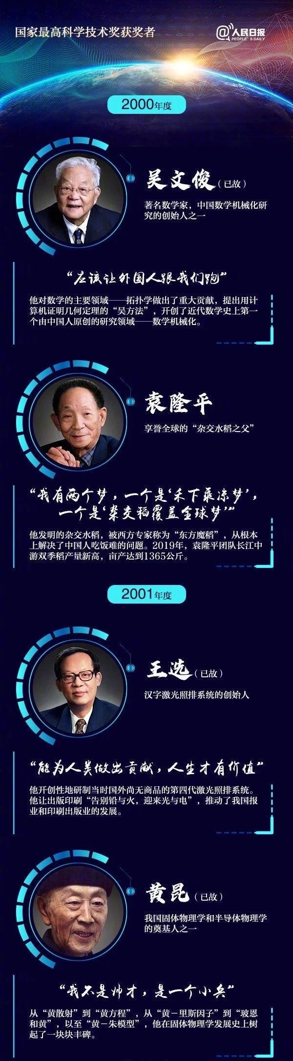 以下是歷屆國家最高科學技術獲獎者,致敬,學習!
