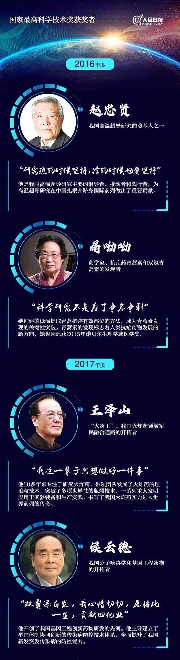 他們胸懷祖國、服務人民,他們追求真理、嚴謹治學,他們勇攀高峰、敢為人先,他們淡泊名利、潛心科學,他們不負人民重托、無愧偉大時代!