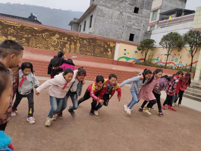 香樟苗圃希望小學的孩子們結伴奔跑。照片由涼山州教育基金會提供。