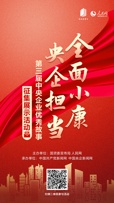 為充分展示廣大中央企業在決勝全面建成小康社會、決戰脫貧攻堅中的作用貢獻,近日,由國資委宣傳局、人民網聯合主辦,中國共產黨新聞網、中國央企新聞網承辦的“全面小康 央企擔當”第三屆中央企業優秀故事征集展示活動正式啟動。