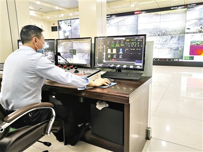 在董合波面前,井下開采的實時畫面流暢地顯示在電腦屏幕上。畫面里偶爾才有人影閃過,那是他在現場巡檢的同事。