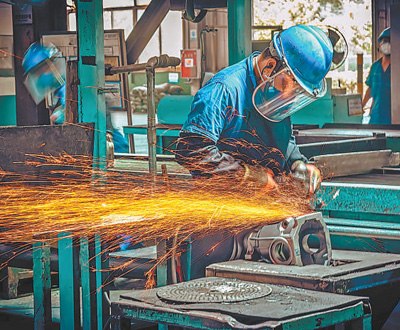 四川省綿陽市,一家汽車零部件制造企業的生產車間內,工人正在作業。