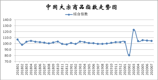 由中國物流與采購聯合會調查、發布的2020年7月份中國大宗商品指數(CBMI)為104.8%,較上月下跌0.4個百分點,連續兩個月下跌。各分項指數中,供應指數和庫存指數繼續上升,銷售指數則連續下降。從本月指數的變化情況來看,在多雨和高溫天氣的影響下,國內市場成交量繼續下滑。與此同時,商品生產企業生產積極性高漲,供應端力度持續走強,市場供需進一步失衡,商品庫存壓力繼續加大。進入8月份,隨著政策面“六保”措施進一步跟進,基建投資及房地產需求有望良性發展;同時,“金九銀十”的旺季情緒可能提前釋放,需求端表現或強于7月份。而環保限產力度加大后,部分商品高供給的勢頭也將得到遏制。因此,在供需基本面雙向修復后,當前市場對8月份走勢較為期待,信心正在逐漸修復。不過,全球疫情依然嚴峻,國內商品出口形勢嚴峻,特別是部分產品繼續“倒灌”,諸多不確定因素也將給國內大宗商品市場帶來負面影響。