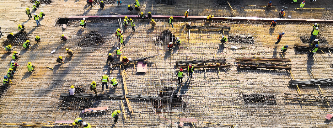 中建集團、中國中鐵等建筑央企是吸納農民工就業的重要平臺。中建二局二公司武廣新城項目工人正在綁扎鋼筋,加快推進工程建設。