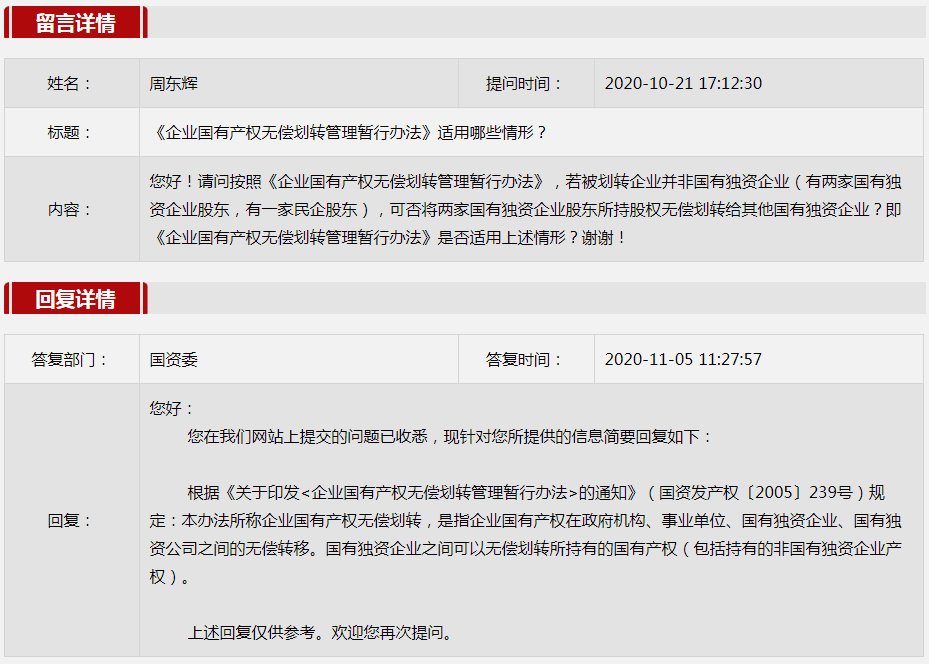 2020年11月國資委網站政務咨詢欄目部分網友提出的咨詢,我們初步做出了認真的回應,現選擇五條關注度高、點擊量高的問題,再次推薦分享。