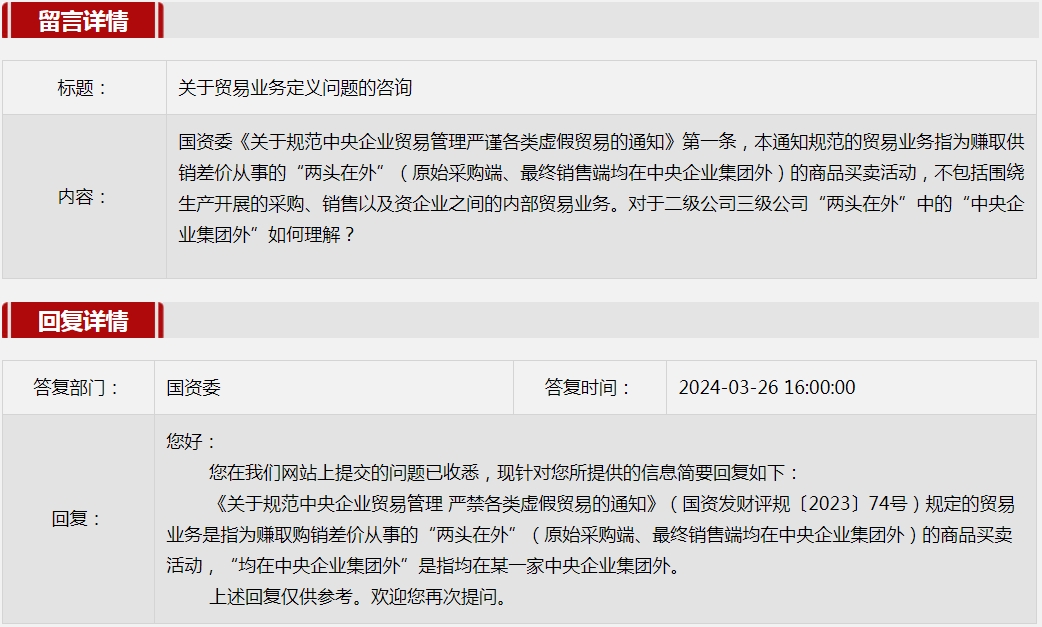 2024年3月國資委網站政務咨詢欄目部分網友提出的咨詢,我們初步做出了認真的回應,現選擇五條關注度高、點擊量高的問題,再次推薦分享。