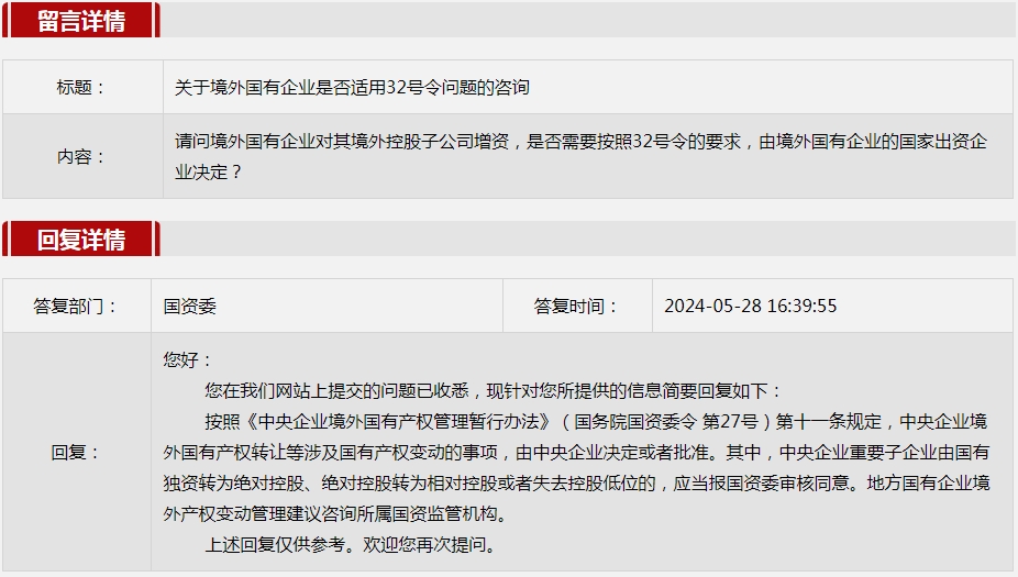 5.關于境外國有企業是否適用32號令問題的咨詢