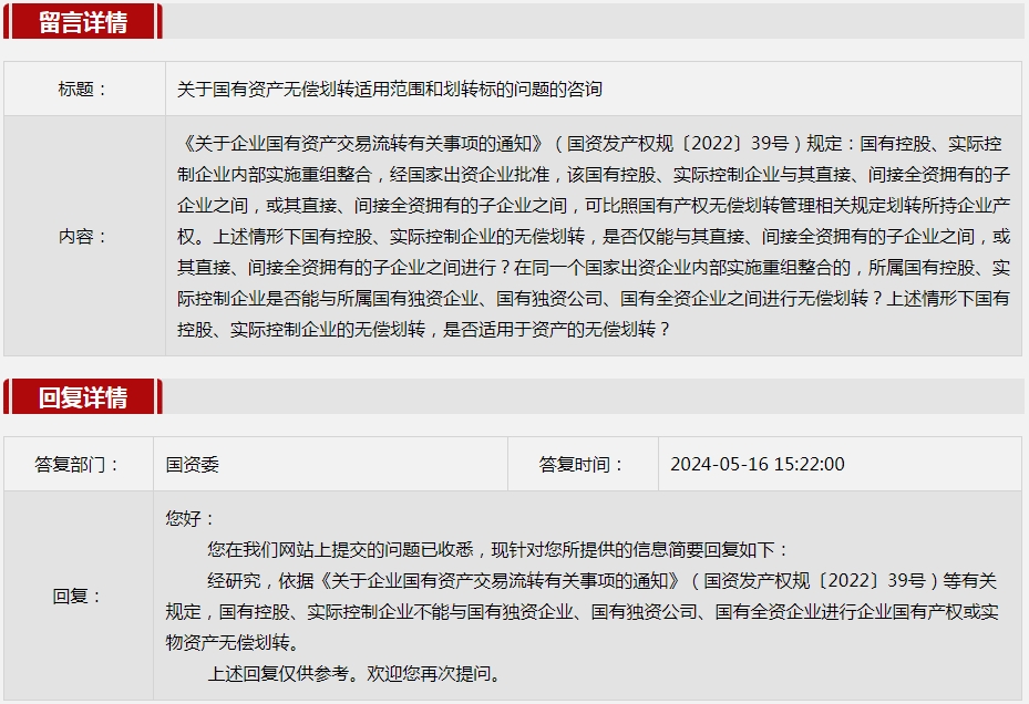 2024年5月國資委網站政務咨詢欄目部分網友提出的咨詢,我們初步做出了認真的回應,現選擇五條關注度高、點擊量高的問題,再次推薦分享。