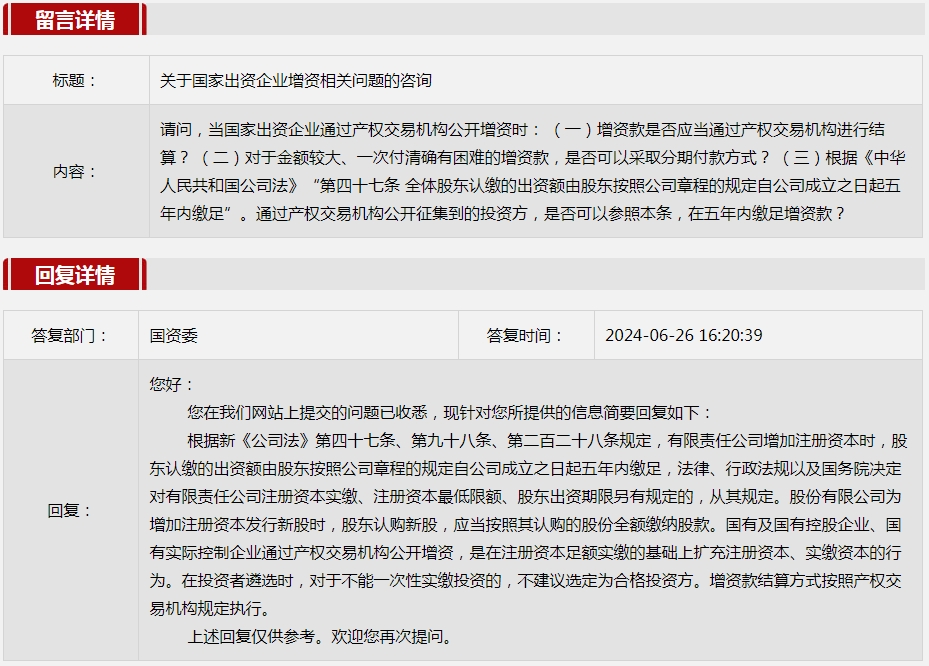 5.關于國家出資企業增資相關問題的咨詢