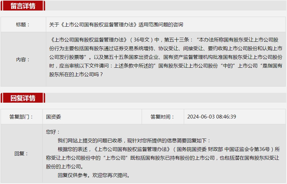 2024年6月國資委網站政務咨詢欄目部分網友提出的咨詢,我們初步做出了認真的回應,現選擇五條關注度高、點擊量高的問題,再次推薦分享。
