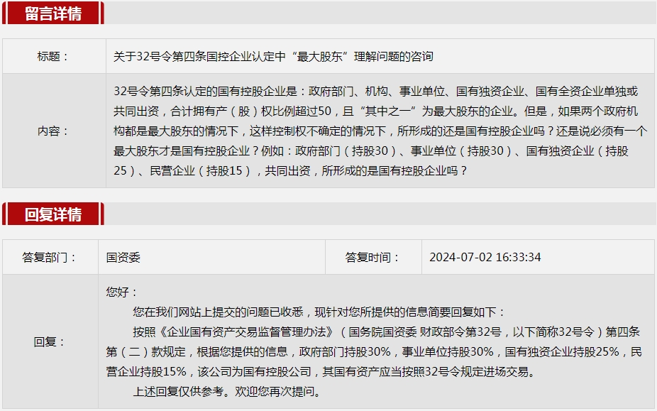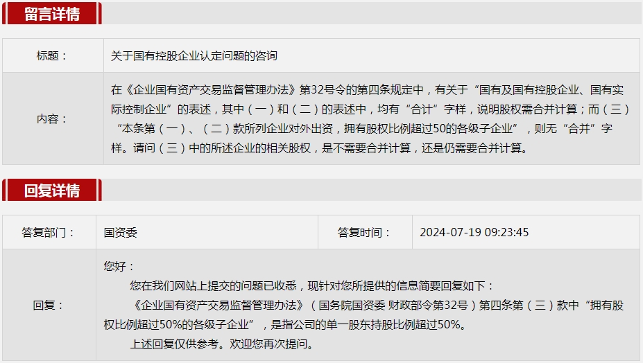 3.關(guān)于國(guó)有控股企業(yè)認(rèn)定問(wèn)題的咨詢