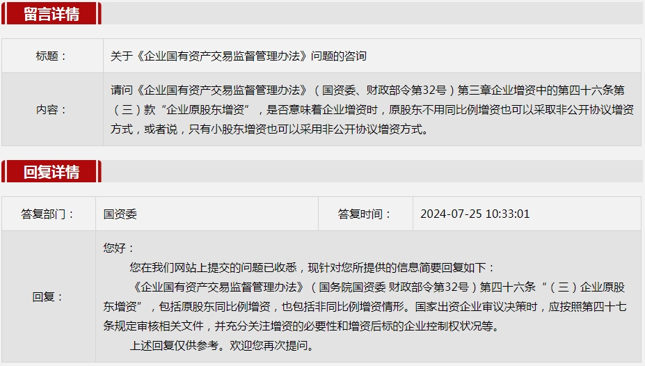 2024年7月國(guó)資委網(wǎng)站政務(wù)咨詢欄目部分網(wǎng)友提出的咨詢,我們初步做出了認(rèn)真的回應(yīng),現(xiàn)選擇五條關(guān)注度高、點(diǎn)擊量高的問(wèn)題,再次推薦分享。