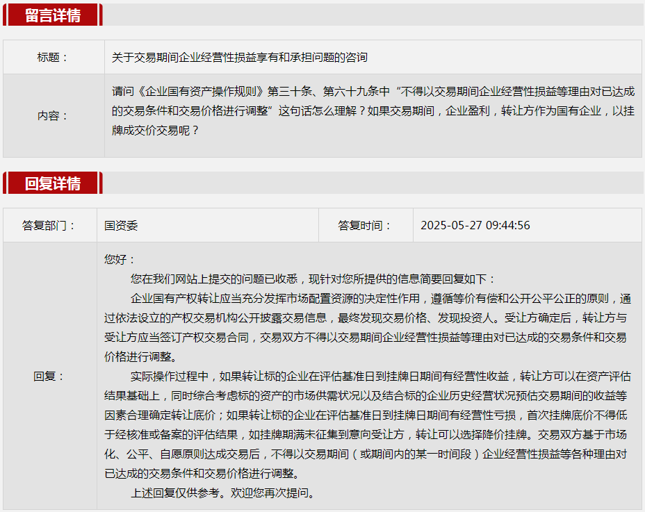 2025年5月國務院國資委網站政務咨詢欄目部分網友提出的咨詢,我們初步做出了認真的回應,現選擇五條關注度高、點擊量高的問題,再次推薦分享。