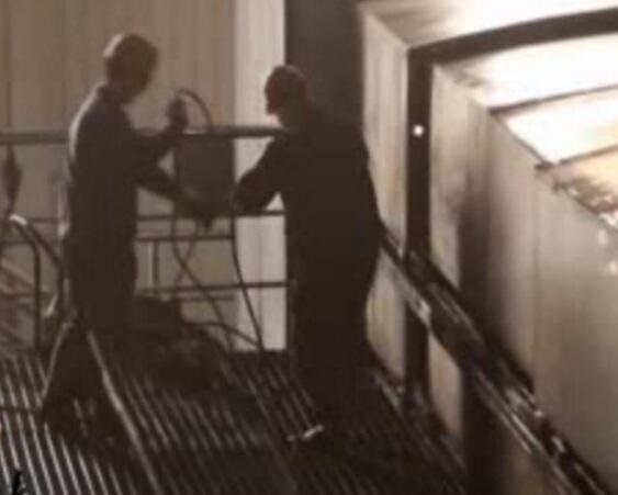 辛圣東(右一)給車間的探傷工做技術培訓