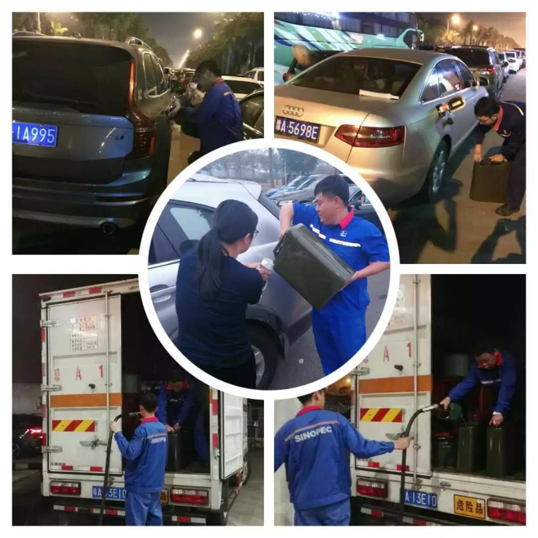 隨著需求的增加,海南石油組織堵車路段周邊加油站點集中便利油桶統籌安排配送油,同時組織兩輛油品配送車,沿途配送油品。