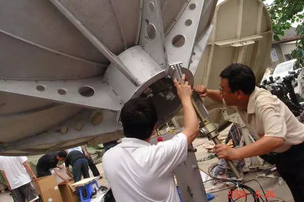 20日一早,隊員們啃著壓縮餅干就迅速投入到搶修的任務中。震后的條件給工作帶來了很多困難,沒有現成的基礎架天線,就冒著余震,在堆滿巨石的公路邊找塊不大的平地,扛來沙包,固定支架,工具不湊手就跪在地上擰螺絲,設備不熟悉就憑借自身在衛星通信方面的豐富經驗一邊摸索一邊干,硬是靠平時積累的技術和能力開通了設備,這是災后第一個搶修成功的通過衛星鏈路解決移動通信問題的地面站!