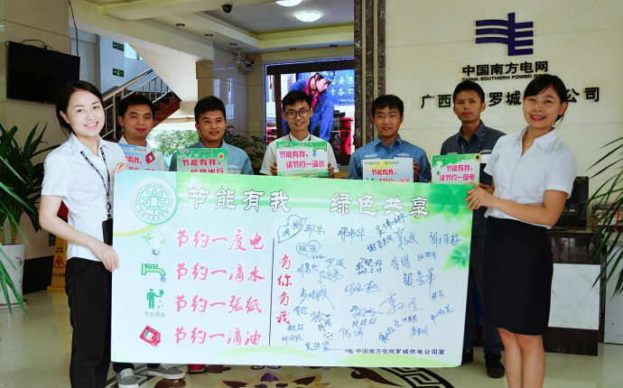 南方電網廣西羅城供電公司組織青年志愿者、黨員志愿者服務隊,開展以“節能有我,綠色共享”為主題的倡導低碳健康生活的宣傳活動。