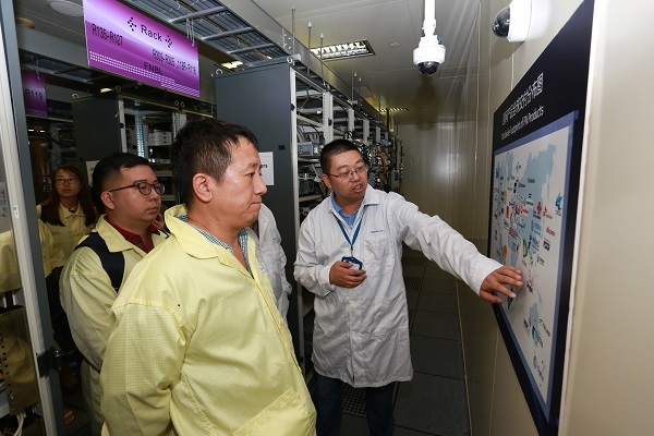 6月27日,由國資委新聞中心組織的“新時代·走進新國企”之“5G應用篇”采訪團走進上海諾基亞貝爾的中央實驗室,聽工作人員講解無線和固網產品分布圖。