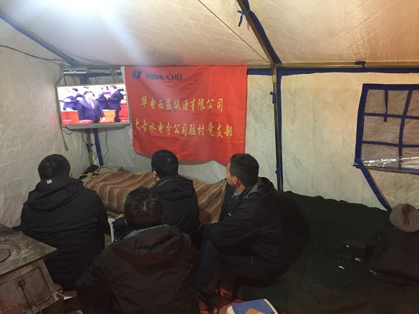 中國華電西藏能源有限公司大古水電分公司駐村黨支部在扶貧點收看慶祝改革開放40周年大會直播,大家表示,堅定信心將改革進行到底,攻堅克難推進精準扶貧,讓老百姓早日脫貧。