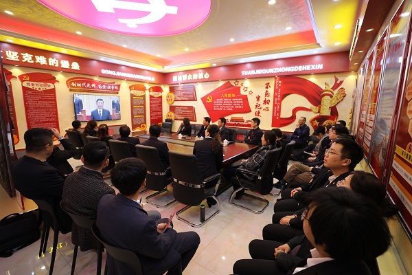 通用技術集團所屬中紡院中麗制機團委廣大團員青年觀看慶祝改革開放40周年大會直播,認真聆聽習近平總書記重要講話。