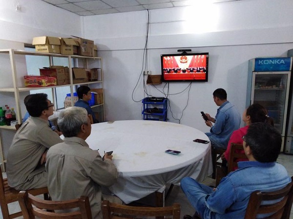 國投孟加拉沙迦拉化肥廠技術服務組在項目現場觀看慶祝改革開放40周年大會直播。