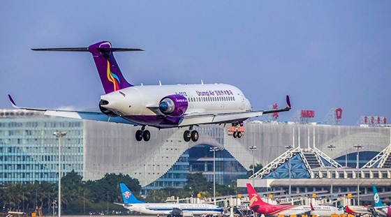 海航集團旗下烏魯木齊航空是繼成都航空、天驕航空之后,國內第三家運營ARJ21-700飛機的航空公司。今年11月珠海航展期間,身披烏魯木齊航空涂裝的ARJ21-700飛機進行了飛行表演。ARJ21-700飛機能夠很好地適應我國中西部機場起降條件和復雜航路越障要求,更好地滿足烏魯木齊航空在新疆地區的航線運營需求,有助于烏魯木齊航空進一步拓寬支線網絡,開通更多疆內環飛、串飛航線。此次演示飛行也進一步拓展了ARJ21-700飛機在國內的飛行區域。截至目前,ARJ21-700飛機已飛抵國內20多個省市的數十座機場,已充分驗證了其在高溫高濕高原高寒地區的適應性,為后續大批量交付運營奠定了基礎。