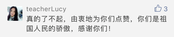 網友@teacherLucy:真的了不起,由衷地為你們點贊,你們是祖國人民的驕傲,感謝你們!