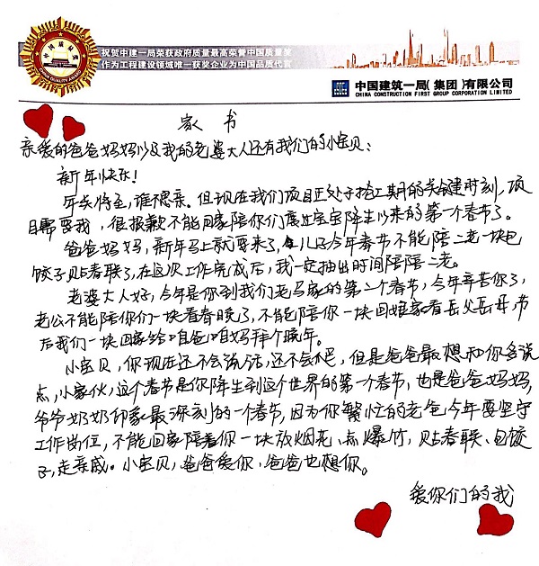 年關將至,誰不思親。但現在我們項目正處于搶工期的關鍵時刻,項目需要我,很抱歉不能回家陪你們度過寶寶降生以來的第一個春節了。