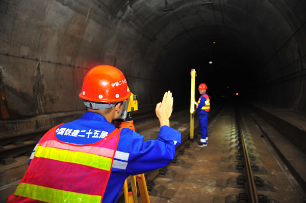 天窗間隙,測量人員進入高鐵隧道進行沉降量精測